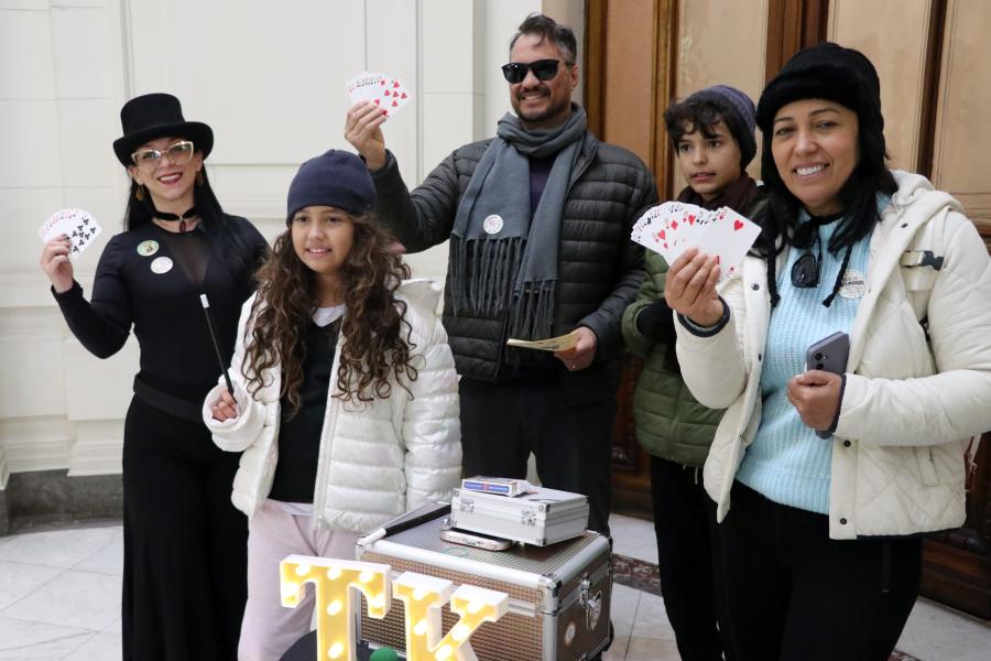 Durante la jornada también se realizaron las presentaciones de los magos Cristian Ardiles, Tania K y Olmax, que llevaron sus trucos e ilusión a diferentes puntos de la Biblioteca. Y la Cineteca Nacional, por su parte, hizo un taller de traumatropos y proyectó 4 películas en las pantallas de la Sala América.